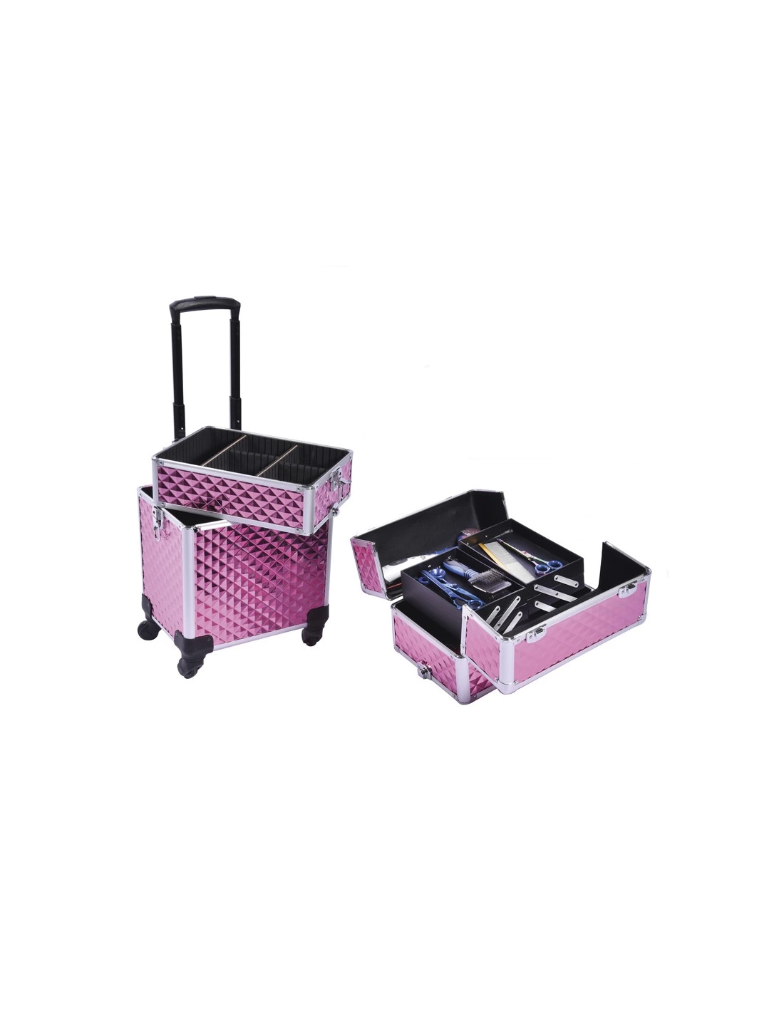 Voziček je izdelan iz visokokakovostnega aluminija, ki zagotavlja majhno težo, izjemno stabilnost in popolno odpornost na vlago ter dlake. Je popoln za salone, saj z modularnimi, medsebojno kombinabilnimi predali omogoča popolno organizacijo negovalnih pripomočkov, od škarij in rezil do sušilnikov in glavnikov. Kolesa se premikajo gladko in tiho, zato je voziček idealen za profesionalne groomerje ali veterinarje, ki potrebujejo prenosljiv in pregleden sistem organizacije. Negovalni voziček za salone je na voljo v dveh barvah: elegantni črni ali energični roza. Dimenzije vozička so 35 × 25 × 69,5 cm, kar pomeni, da zavzame malo prostora, a nudi maksimalno praktičnost.