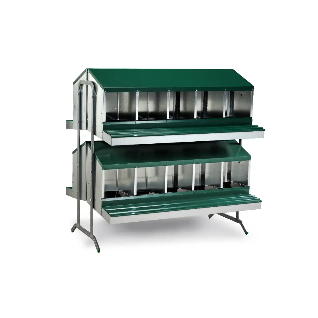 Baterijsko gnezdo s 20-imi oddelki je zasnovano za večje kurnike, kmetije in profesionalne rejce, ki potrebujejo zanesljiv sistem za zbiranje jajc. Vsak oddelek deluje kot samostojno gnezdo, kar zmanjšuje gnečo in stres med kokošmi.