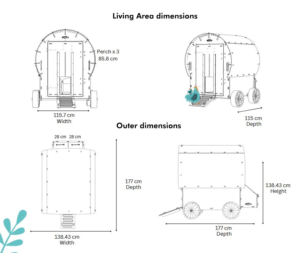 Kokošnjak Vagonček je primeren za do 8 velikih kokoši ali do 15 pritlikavih kokoši.
