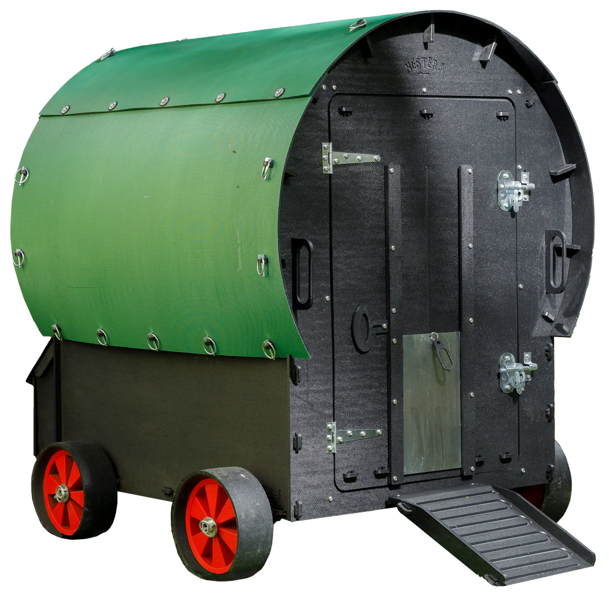 Kokošnjak Vagonček je vrhunski mobilni kokošnjak za domačo rejo kokoši, zasnovan za uporabnike, ki želijo trajno, čisto in enostavno rešitev za rejo na prostem. Izdelan je iz približno 70 % reciklirane plastike debeline 9 mm, ki je odporna na UV-žarke, dež, sneg, vlago in temperaturne šoke. Material se ne razsloji, ne razpade, ne gnije in ne vpija vode, zato je kokošnjak primeren za celoletno uporabo brez zahtevnega vzdrževanja.