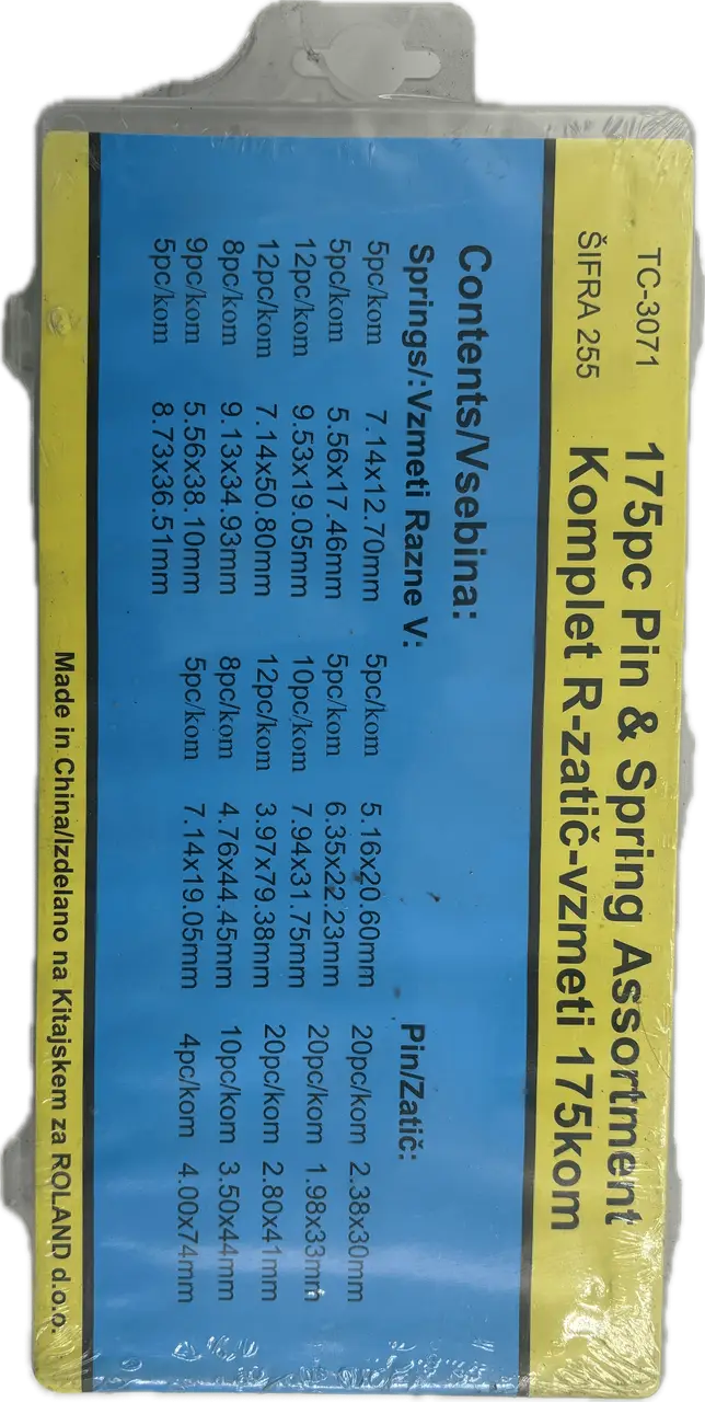 Komplet 175 R-zatičev in vzmeti v praktični škatli – idealen za kmetijsko mehanizacijo, avtomobilsko industrijo in domačo uporabo. Naročite zdaj!