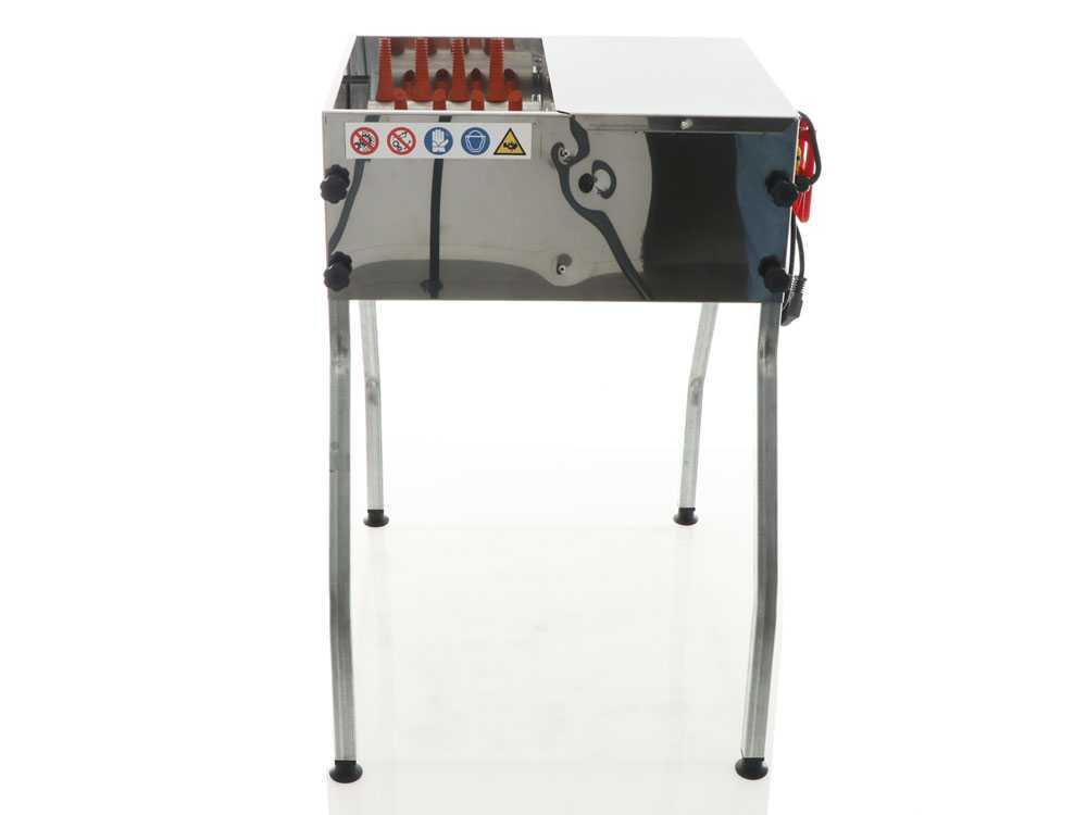 Skubilnik PIUMINA STANDARD je visokokakovostna naprava, izdelana iz nerjavečega jekla, zasnovana za hitro in učinkovito odstranjevanje perja pri različnih vrstah perutnine. Ta skubilnik piščancev je opremljen z aluminijastim valjem s 24 gumijastimi prsti, ki omogočajo natančno odstranjevanje perja brez poškodbe kože živali. Valj deluje v smeri urinega kazalca in s pomočjo vrtinčenja in mehanskega delovanja gumijastih prstov učinkovito odstranjuje perje. Poleg tega je skubilnik piščancev zelo enostaven za vzdrževanje.